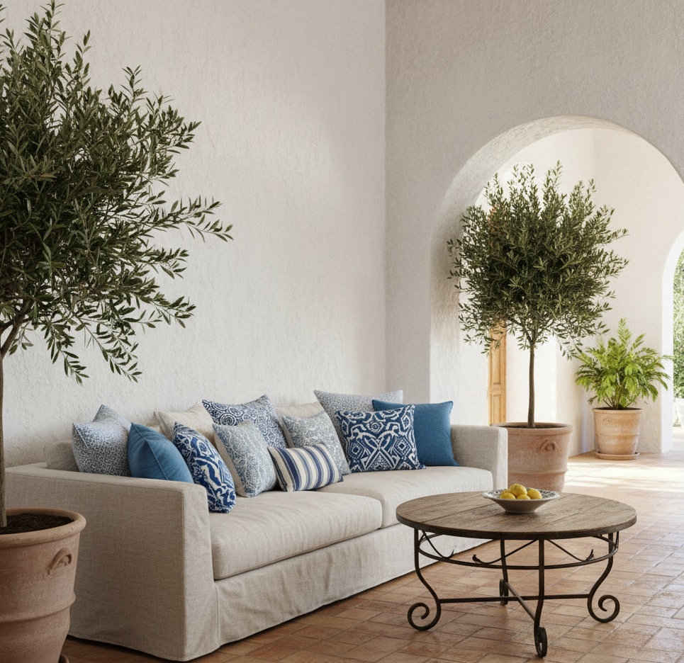 Transport yourself to sun-drenched shores with Mediterranean home ideas, a style that evokes the warmth and relaxed elegance of coastal European villas. This aesthetic is characterised by its earthy textures, vibrant colours, and a strong connection to nature and outdoor living. Key materials include terracotta tiles, wrought iron, stucco, natural wood, and mosaic accents, creating a rustic yet refined atmosphere. The colour palette is rich and inviting, featuring warm whites, deep blues, terracotta oranges, and olive greens, reminiscent of the sea and landscape. Functionality is about creating comfortable, inviting spaces that flow seamlessly between indoors and outdoors. The mood is one of relaxed luxury and hospitality, perfect for entertaining and enjoying life. Mediterranean home decor and design ideas bring a touch of European charm and warmth to any home.