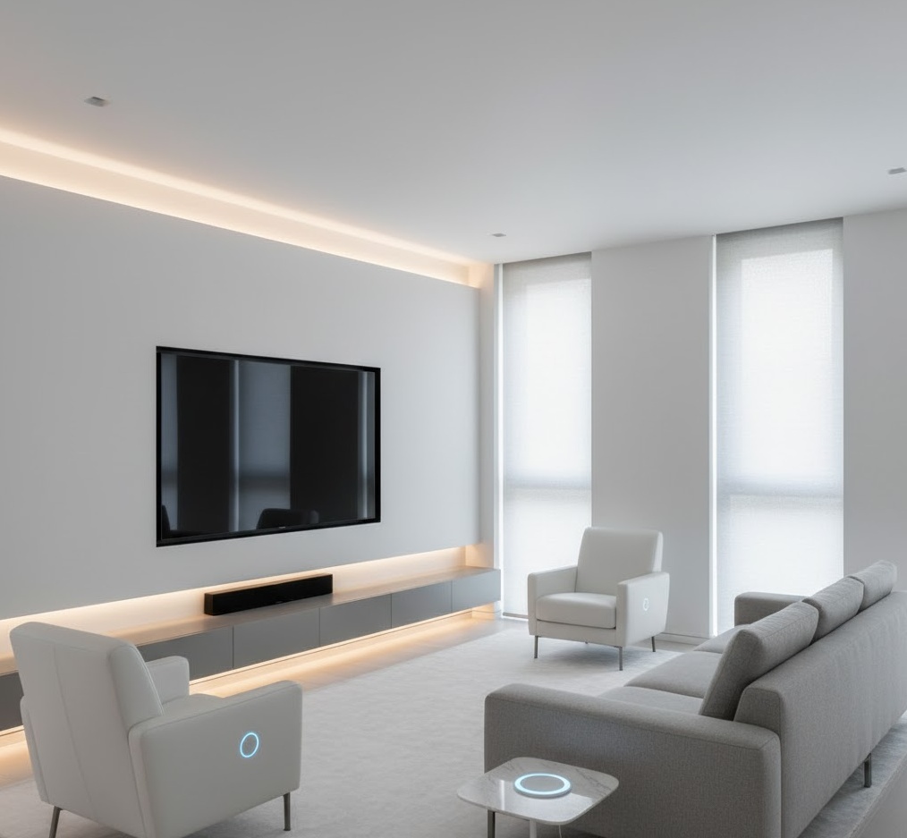 Smart tech space maximisation integrates cutting-edge technology to enhance functionality and efficiency within a home, making every square inch work harder. This style often features a sleek, contemporary aesthetic with a neutral colour palette, allowing the technology to blend seamlessly into the background. Materials are typically modern and refined, such as glass, polished metals, and smooth composites, contributing to a high-tech yet minimalist feel. Functionality is paramount, with smart home systems controlling lighting, climate, entertainment, and security, often through voice commands or integrated panels. Hidden charging stations, automated blinds, and multi-functional smart furniture are key elements. The mood is one of effortless convenience and futuristic living, offering innovative house ideas for remodeling, decorating and maximizing space through intelligent design and connectivity.