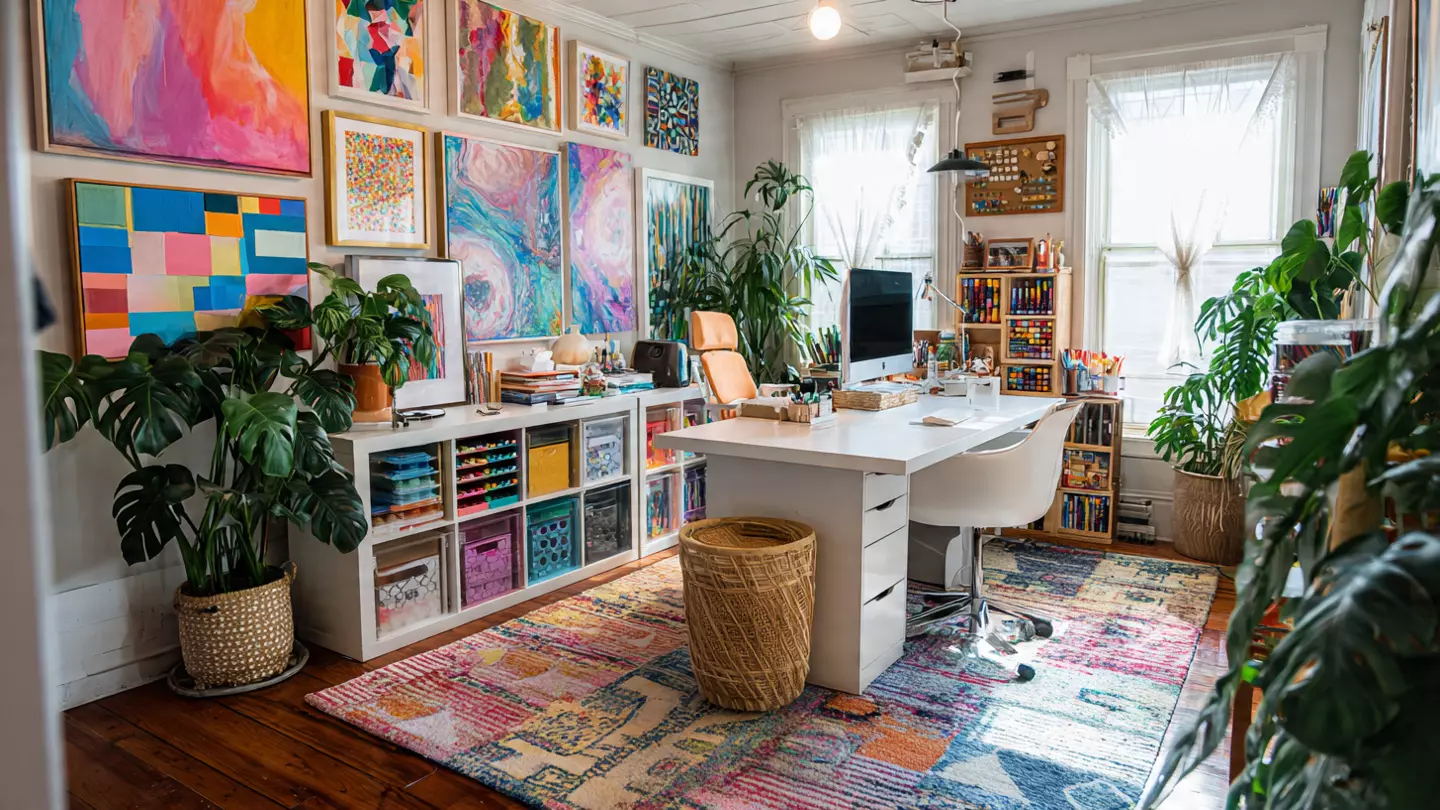Don’t forget the role of nature. Adding indoor plants not only purifies the air but also introduces organic shapes and vibrant greens that reduce mental fatigue. By mixing a productive room layout with playful elements, you create a space that feels less like a chore and more like a studio.