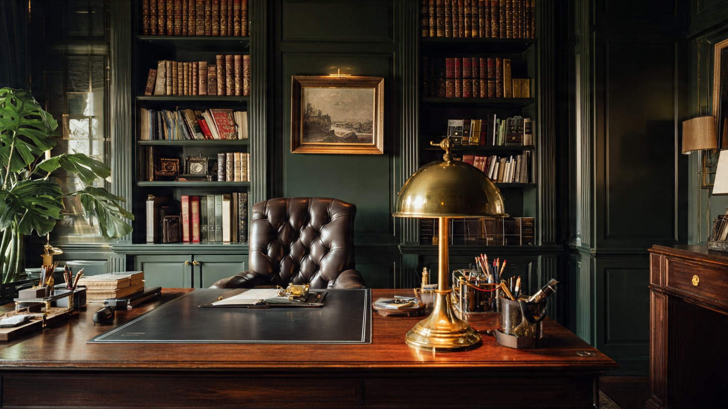 While minimalism is about openness, the Moody Executive vibe is about containment. This style, often blending elements of Dark Academia and corporate chic, is designed for those who engage in “Deep Work”-tasks that require hours of uninterrupted concentration. By using a palette of navy, forest green, or charcoal, you create a cocoon effect. These darker hues absorb light and minimize peripheral distractions, effectively narrowing your visual field to your screen and your notes.