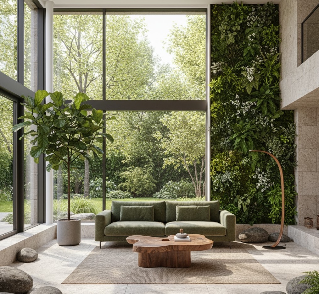 Biophilic interior style is an innovative approach to interior decoration that seeks to connect occupants with nature, enhancing well-being and productivity, making it one of the most mindful interior decoration styles explained. This look is characterised by the integration of natural elements, patterns, and processes into the built environment, fostering a sense of harmony. The colour palette is predominantly inspired by nature, featuring greens, browns, blues, and earthy tones, creating a calming and refreshing atmosphere. Materials are natural and sustainable, including wood, stone, cork, bamboo, and an abundance of living plants, which purify the air and add vibrant texture. When choosing the right look for your home, Biophilic design prioritises natural light, fresh air, and views of nature, fostering a sense of vitality and peace. It’s about bringing the outdoors in, creating a healthy, inspiring, and deeply restorative living space that nurtures the soul.