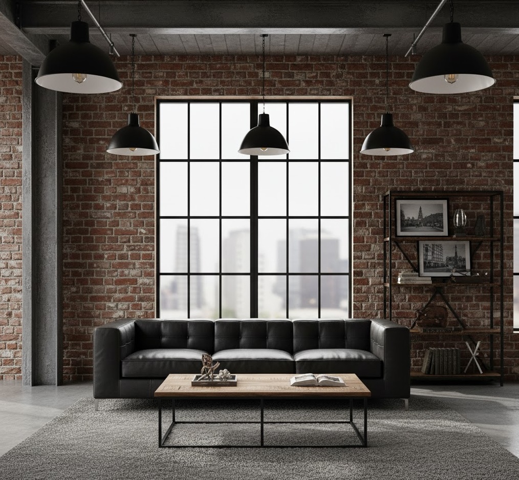 Industrial interior design is one of the boldest interior decoration styles explained, drawing inspiration from factories and urban lofts to create a raw, authentic aesthetic. This style proudly showcases unfinished elements such as exposed brick walls, concrete floors, and visible ductwork or pipes, celebrating the structural integrity of a building. The colour palette typically leans towards neutrals like grey, black, white, and various metallic tones, creating a robust and edgy atmosphere. Materials are key, featuring steel, iron, reclaimed wood, and distressed leather, which contribute to its authentic, utilitarian charm and durability. When choosing the right look for your home, Industrial style means embracing functionality, a sense of history, and often incorporating vintage factory lighting and sturdy, practical furnishings. The mood is typically strong, masculine, and effortlessly cool, perfect for those who appreciate a no-nonsense, urban-inspired living space that feels both grounded and stylish.