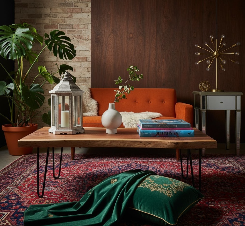 Mid Century Modern interior home decor ideas are defined by clean lines, organic shapes, and a focus on functionality and innovative materials from the mid-20th century. The colour palette often features a mix of earthy tones like avocado green, mustard yellow, and burnt orange, alongside neutrals and teak wood. Materials include teak, walnut, plywood, plastic, and glass, showcasing a blend of natural and man-made elements. The mood is optimistic, stylish, and comfortable, reflecting a post-war era of design innovation. Practical tips involve investing in iconic furniture pieces and incorporating Sputnik chandeliers to transform rooms into timeless, sophisticated spaces.