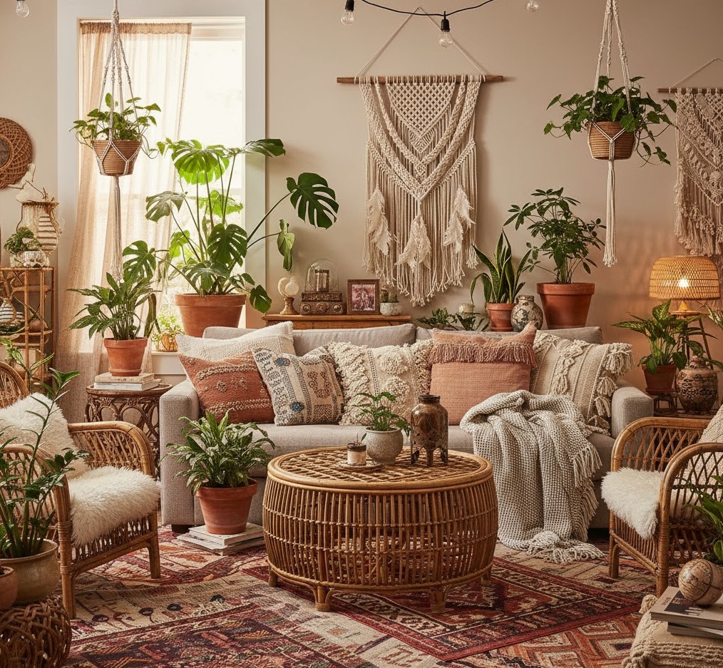 Bohemian interior home decor ideas celebrate a free-spirited, eclectic aesthetic, drawing inspiration from global travels and artistic expression. This style embraces a rich tapestry of textures, patterns, and colours, often featuring warm earthy tones, deep jewel hues, and vibrant textiles. Natural materials like rattan, macramé, wood, and woven fabrics are paramount, creating a cosy and inviting atmosphere. Layering is key, from patterned rugs and throws to an abundance of plants and unique artisanal finds, each piece telling a story. The mood is relaxed, unconventional, and deeply personal, offering practical tips for transforming rooms into vibrant, lived-in sanctuaries.
