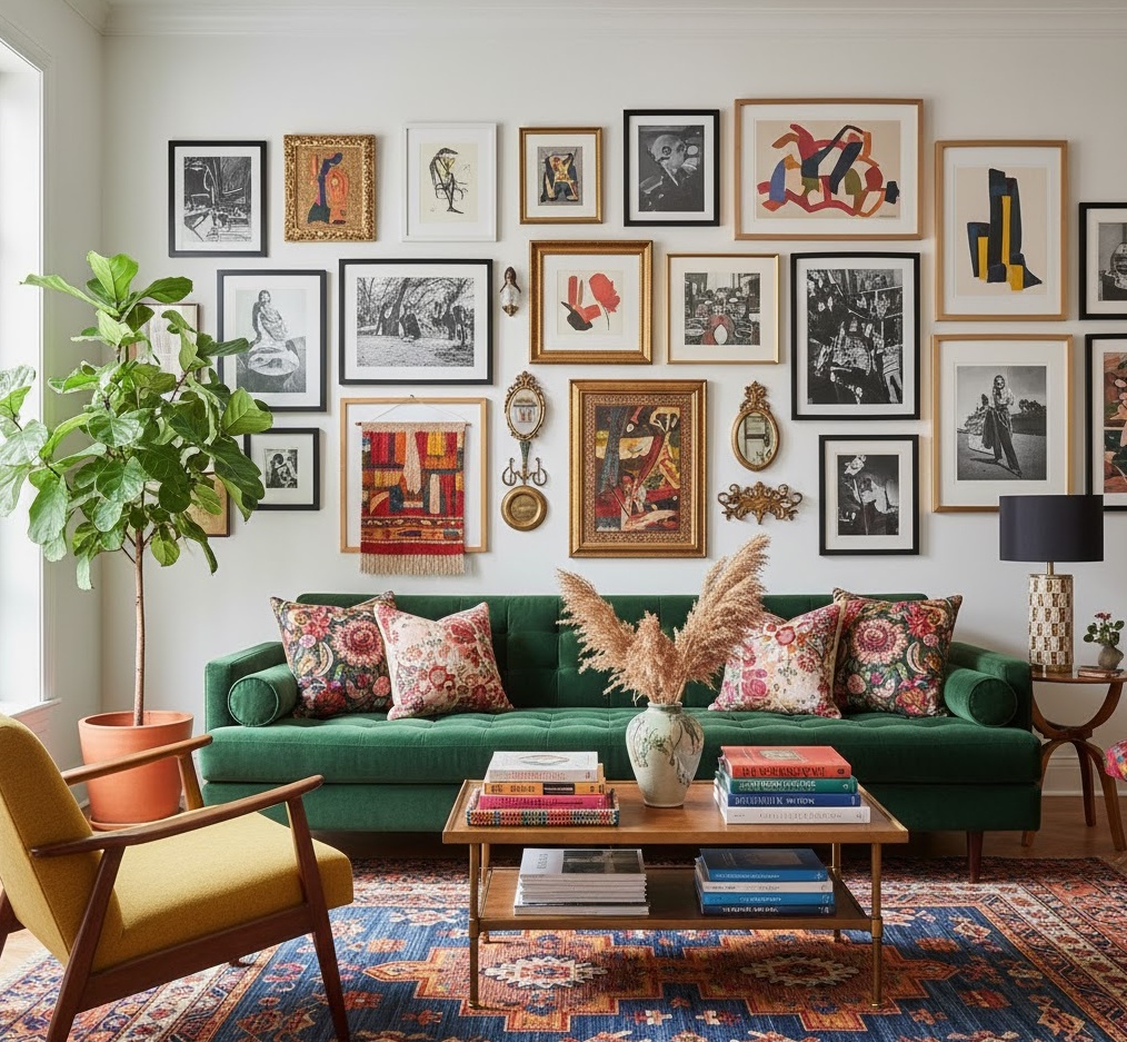 Eclectic interior home decor tips celebrate individuality and personal expression, blending various styles, periods, and textures into a cohesive yet unique design. There’s no strict colour palette; instead, it often features a harmonious mix of bold hues and patterns alongside more subdued tones, allowing for creative freedom. Materials are diverse, combining vintage finds with modern pieces, luxurious fabrics with rustic elements, and global treasures with local crafts. The mood is vibrant, artistic, and deeply personal, reflecting the homeowner’s journey and tastes. Practical tips involve finding common threads like colour or texture to unite disparate items, transforming rooms into truly one-of-a-kind spaces.