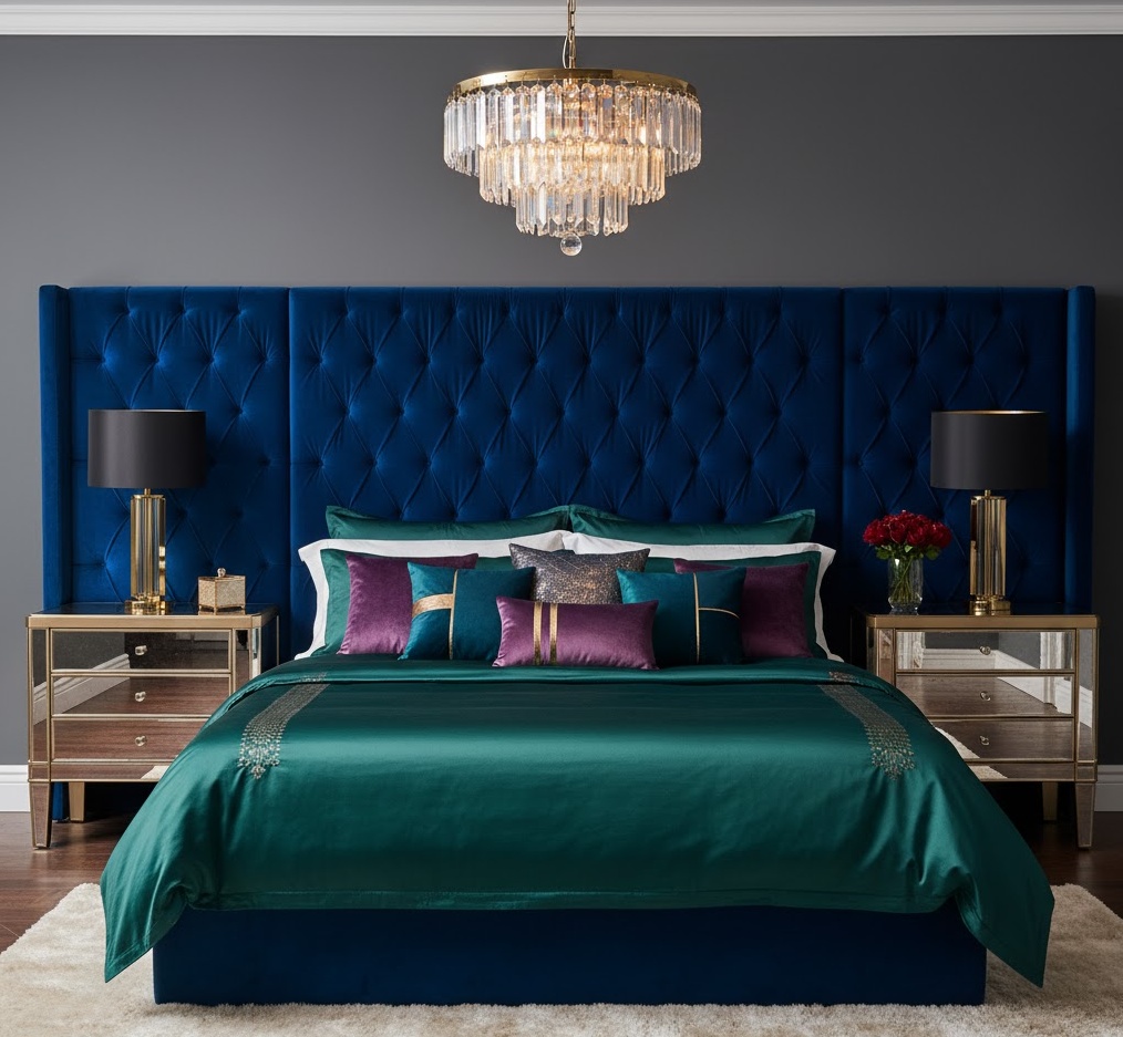 Glamorous Interior home decor ideas are all about luxury, opulence, and a touch of Hollywood Regency sparkle, creating spaces that feel lavish and sophisticated. This style often features a rich colour palette of deep jewel tones, metallics like gold and silver, and classic black and white. Materials are sumptuous and reflective, including velvet, silk, mirrored surfaces, polished chrome, crystal, and marble. The mood is undeniably elegant, dramatic, and high-end, designed to impress and indulge. Practical tips involve incorporating statement chandeliers, plush fabrics, and reflective surfaces to transform any room into a dazzling, luxurious retreat.
