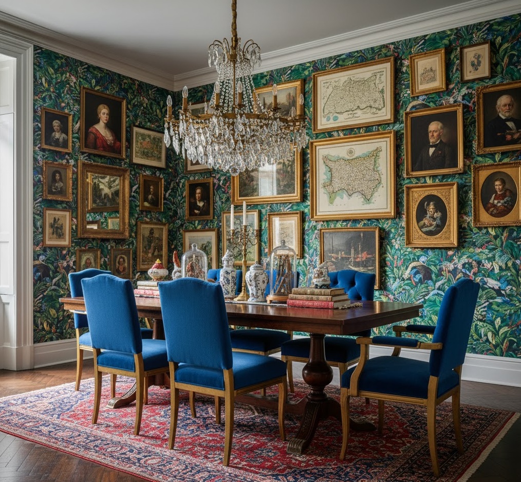 Maximalist Interior home decor tips celebrate abundance, bold expression, and a “more is more” philosophy, creating visually rich and deeply personal spaces. This style embraces a vibrant and diverse colour palette, often featuring clashing patterns, rich textures, and a multitude of objects. Materials are varied and luxurious, including velvet, silk, ornate wood, intricate wallpapers, and a collection of art and curiosities. The mood is exuberant, artistic, and utterly unique, reflecting a fearless approach to design. Practical tips involve layering patterns, mixing periods, and curating collections to transform rooms into captivating, storytelling environments.
