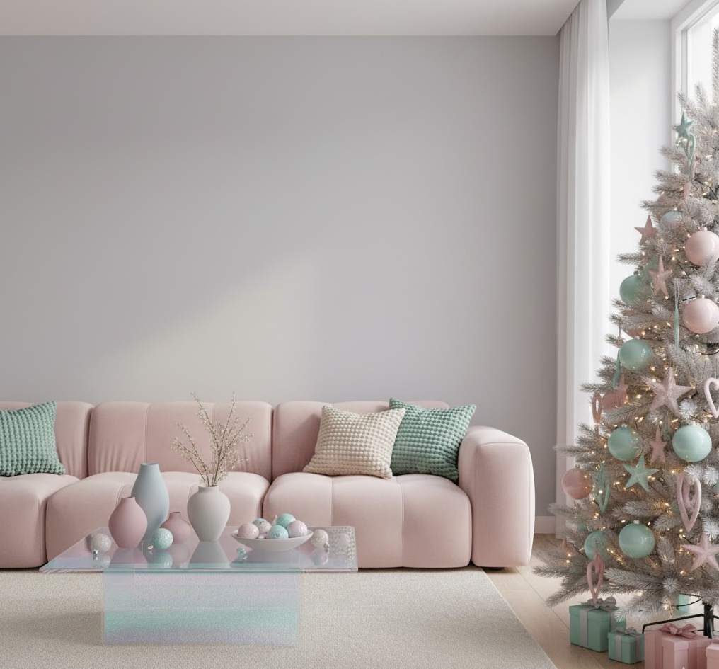 Pastel Modern Christmas Decor offers a soft, whimsical, and utterly charming approach to festive styling, moving away from traditional bold colours. This modern Christmas decor style is characterised by its gentle hues, delicate textures, and a light, airy feel. Materials often include matte ceramics, frosted glass, soft wool, and delicate fabrics like tulle or chiffon, all contributing to a dreamy and ethereal atmosphere. The colour palette is dominated by soft pinks, mint greens, baby blues, lavender, and creamy yellows, creating a harmonious and soothing visual experience. Decorations are typically whimsical and playful, such as cloud-shaped ornaments, iridescent baubles, and delicate fairy lights. Functionality is about creating a light and inviting space that feels joyful and serene. The mood is sweet, enchanting, and wonderfully unique, offering a fresh and contemporary take on holiday cheer that is both elegant and delightful.