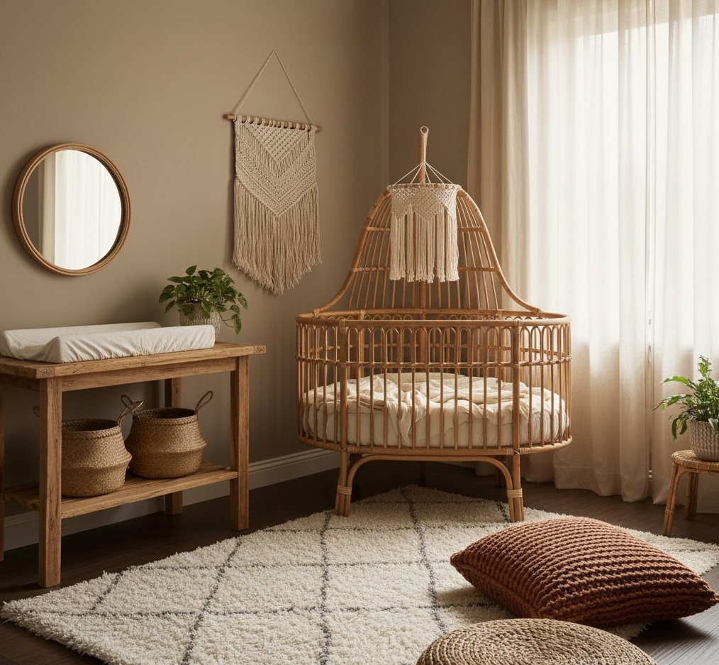 Infuse warmth and free-spirited charm into your baby’s room with bohemian nursery furniture, celebrating natural textures, global influences, and a relaxed aesthetic. This inviting style often features handcrafted pieces like rattan cots, macramé wall hangings, and plush floor cushions, creating an incredibly cosy and welcoming atmosphere for both parent and child. The colour palette typically includes earthy tones such as terracotta, mustard, and sage green, beautifully complemented by intricate patterns, woven textiles, and unique handcrafted details that add depth and character. This approach encourages a relaxed, eclectic feel, allowing for a mix of vintage finds and sustainable materials to give the baby room a truly individual and authentic sanctuary. These bohemian nursery furniture ideas are perfect for creating a nurturing space that feels both grounded and wonderfully imaginative.