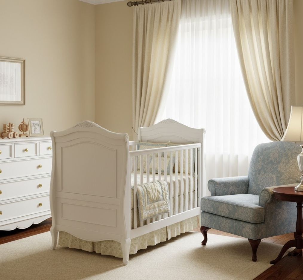 Embrace timeless elegance with classic nursery furniture, drawing profound inspiration from traditional designs and enduring craftsmanship that exudes sophistication. This style often features ornate details, rich wood finishes, and a delicate palette of creams, soft blues, and gentle pinks, creating a truly luxurious feel. Think sturdy wooden cots with decorative mouldings, elegant armoires for ample storage, and beautifully upholstered rocking chairs that invite comfort. Classic baby room furniture creates a warm, inviting, and sophisticated atmosphere that never goes out of style, offering a sense of heritage and lasting comfort. These nursery furniture ideas are perfect for a traditionally beautiful and serene space.