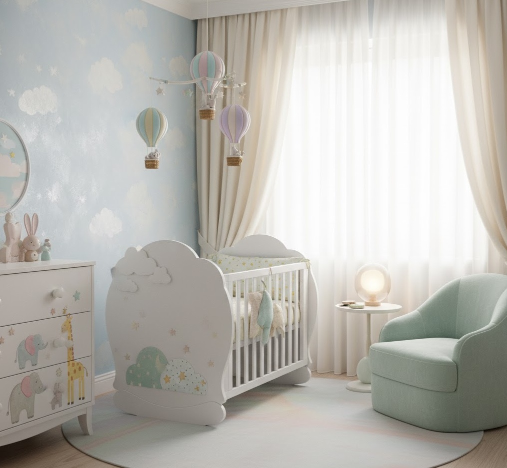 Spark boundless imagination with whimsical nursery furniture, creating a magical and enchanting space that feels straight out of a storybook for your baby. This delightful style often incorporates playful shapes, imaginative themes, and a vibrant, yet soft, colour palette that stimulates wonder. Think cots shaped like clouds or charming little houses, furniture with intricate hand-painted details, and fantastical motifs that inspire dreams. Materials can vary widely, but often include painted wood, soft, tactile fabrics, and charming, unique accessories that add to the enchantment. These nursery furniture ideas transform the baby room into a truly wondrous setting, full of delight and creative potential.