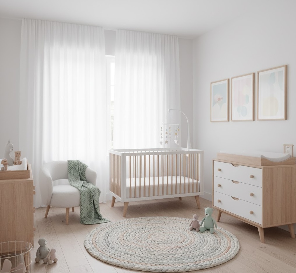The Scandinavian girl nursery embodies simplicity, functionality, and a bright, airy aesthetic, creating a calm and stimulating environment. This design typically features a clean palette of white, light grey, and natural wood tones, often with subtle pops of pastel colour in accessories. Furniture is minimalist and practical, crafted from light woods like birch or pine, prioritising safety and ease of use. Materials include organic cotton, wool, and felt, adding warmth and texture without clutter. The mood is serene and uncluttered, promoting a sense of peace and encouraging imaginative play in a beautifully understated setting.