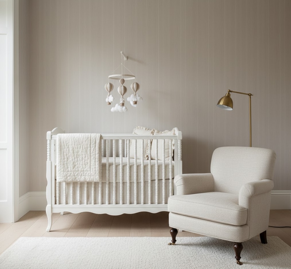 A classic neutral nursery exudes timeless elegance and enduring charm, creating a sophisticated and comforting space that transcends fleeting trends. This style embraces traditional elements, refined details, and a soft, inviting colour scheme, ensuring a graceful environment for your little one. The palette typically features creamy whites, soft ivories, gentle pastels, and subtle gold or silver accents, evoking a sense of heritage and luxury. Materials such as rich woods, upholstered fabrics, delicate lace, and fine cotton are integral, adding layers of texture and a touch of opulence. Furniture often includes a beautifully crafted cot, a plush armchair, and a traditional dresser, all chosen for their quality and classic appeal. The mood is one of serene sophistication and gentle warmth, providing a truly elegant and nurturing haven.