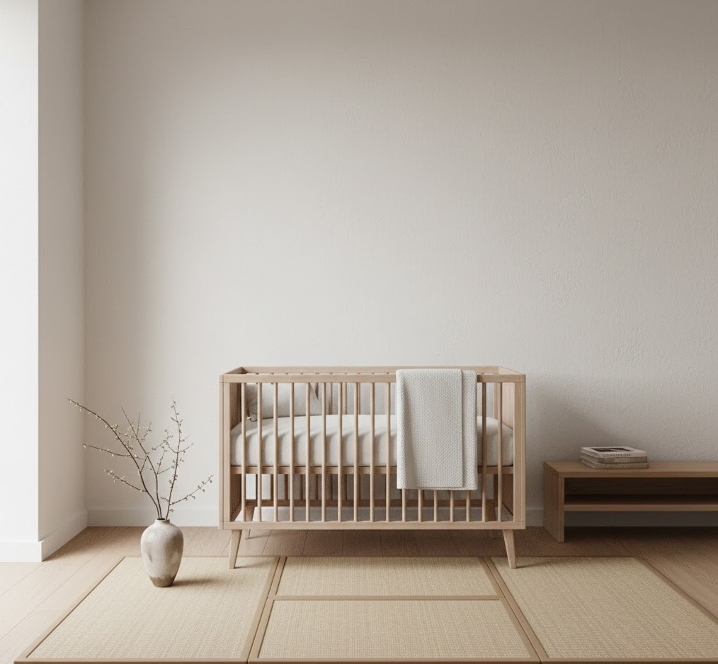 The Japandi neutral nursery seamlessly blends Japanese minimalism with Scandinavian warmth, creating a space of profound serenity and functional beauty. This hybrid style champions clean lines, natural materials, and a calm, uncluttered aesthetic, fostering a peaceful environment for your baby. The colour palette is typically muted, featuring soft whites, warm greys, light wood tones, and subtle earthy accents like sage or terracotta. Materials such as light-coloured timber, bamboo, linen, and ceramics are integral, adding texture and an organic feel. Furniture is sleek, low-profile, and highly functional, often with a focus on craftsmanship and durability. The mood is one of quiet harmony and mindful simplicity, providing a tranquil and balanced space that promotes calm and thoughtful living from an early age.