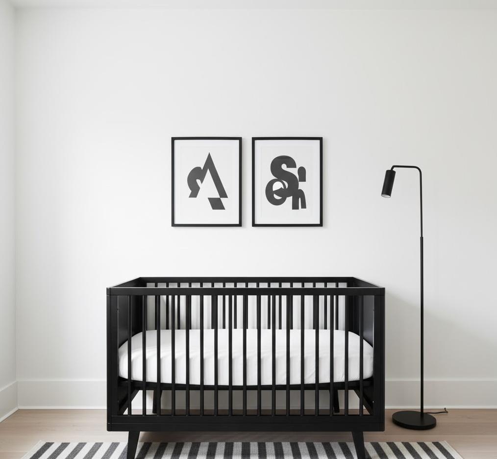 A modern neutral nursery embodies sleek sophistication and contemporary elegance, perfect for parents who appreciate clean lines and a refined aesthetic. This style prioritises minimalist forms, geometric precision, and a sophisticated colour palette, creating a chic and functional space. The dominant colours are often crisp whites, various shades of grey, muted blacks, and subtle pops of sophisticated, desaturated hues. Materials like smooth wood, metal accents, and high-quality, durable fabrics are frequently used, contributing to a polished and streamlined look. Furniture is typically sleek, often with a low profile and integrated storage, ensuring both style and practicality. The mood is one of understated luxury and calm efficiency, providing a stylish yet utterly comfortable environment for your baby.