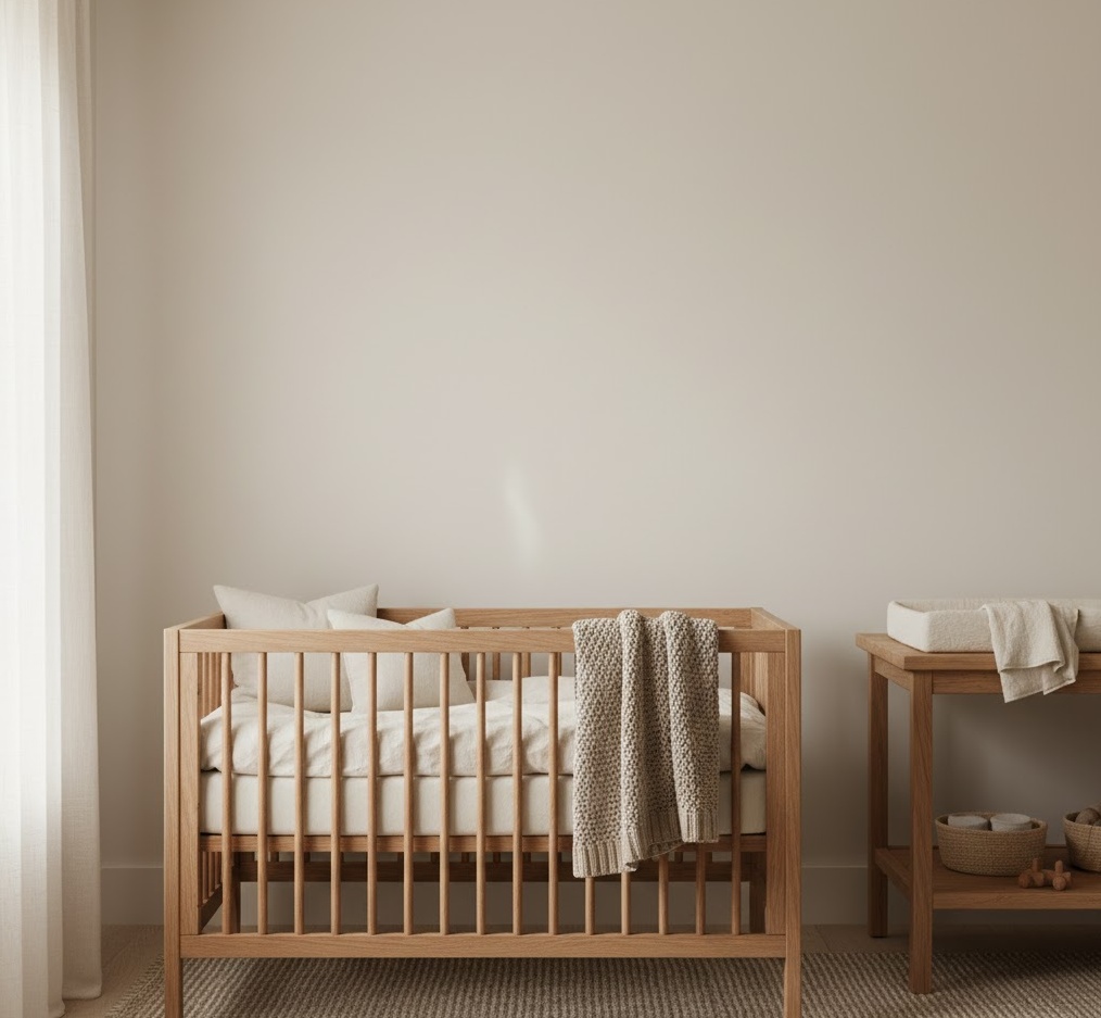 An organic neutral nursery prioritises health, sustainability, and natural comfort, creating a safe and gentle environment for your baby. This style focuses on non-toxic materials, natural fibres, and a soft, soothing aesthetic, ensuring peace of mind for parents. The colour palette typically features gentle creams, warm beiges, soft greens, and muted blues, all derived from natural dyes where possible. Materials such as organic cotton, linen, wool, and sustainably sourced, untreated wood are paramount, chosen for their purity and breathability. Furniture is often crafted from solid, natural wood with non-toxic finishes, ensuring a healthy sleep and play space. The mood is one of pure comfort and mindful living, providing a truly wholesome and nurturing haven free from harsh chemicals and artificial elements.