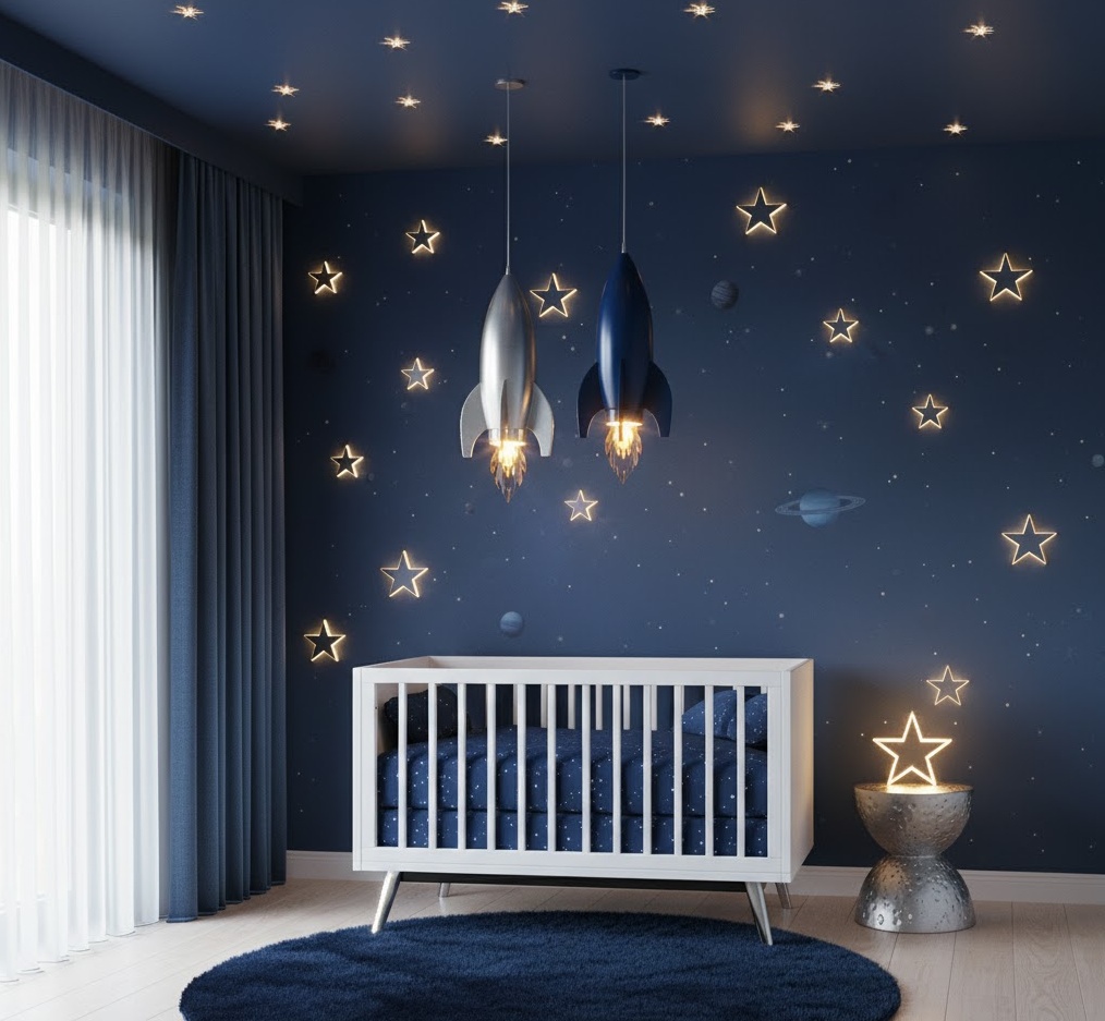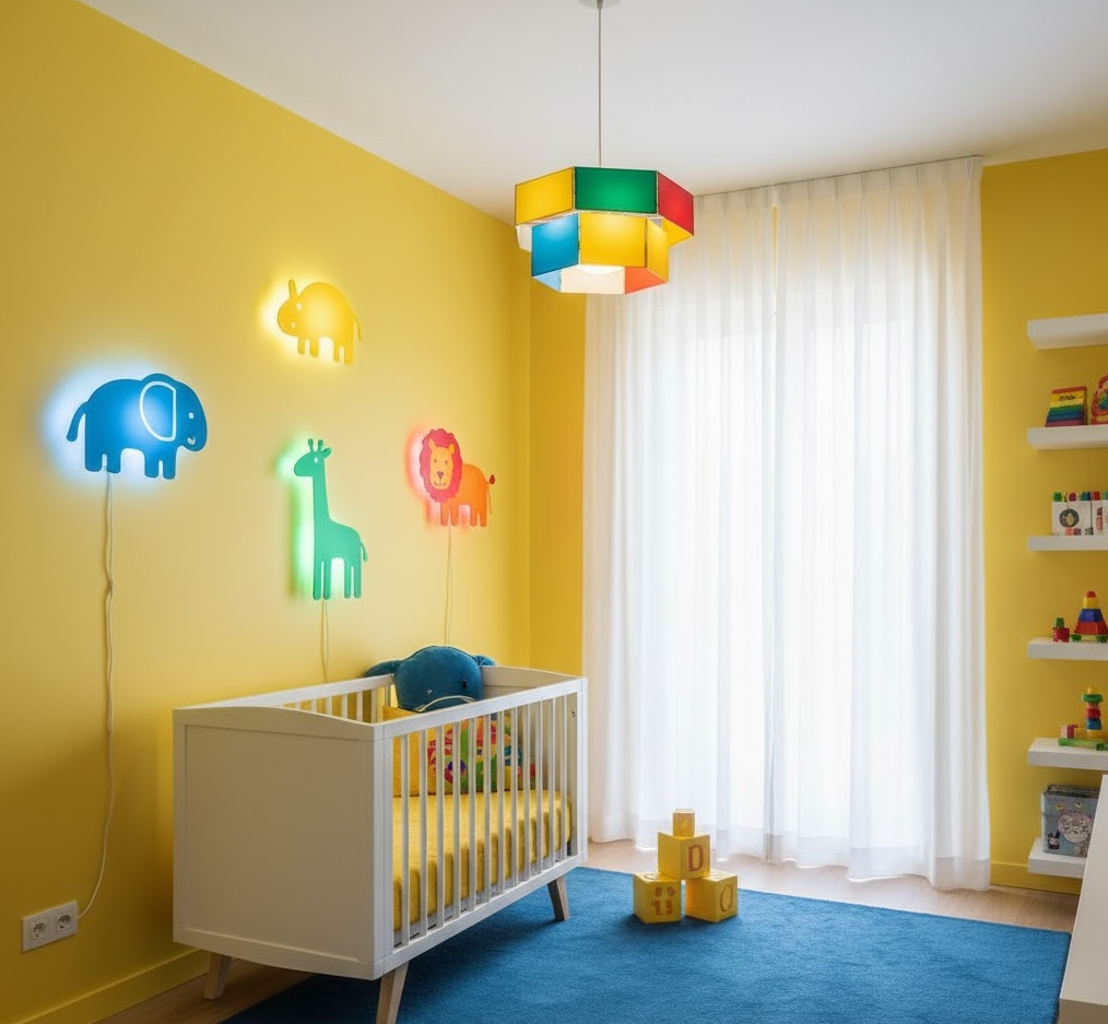 Ignite imagination and wonder with storybook enchantment nursery lighting, creating a magical realm for your little one. These captivating nursery lighting ideas often feature whimsical designs inspired by fairy tales, mythical creatures, or beloved children’s stories. Think mushroom-shaped lamps, fairy lights woven into canopies, or fixtures depicting forest animals. Materials can include painted wood, resin, or soft fabrics, often in vibrant or pastel colours to match the fantastical theme. The mood is dreamy and inspiring, perfect for fostering creativity and a love for stories. Functionally, these lights provide a soft, inviting glow that enhances the narrative of the room, making bedtime stories even more special.