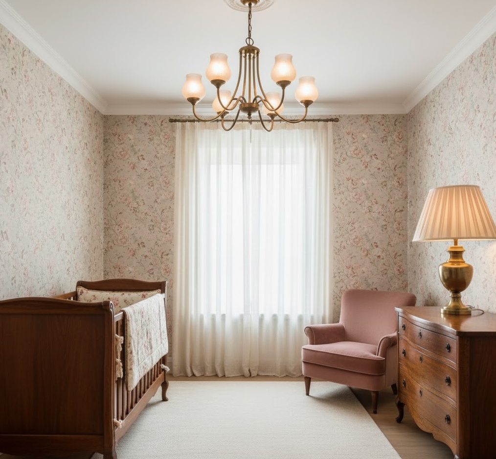 Infuse your nursery with nostalgic elegance using vintage charm lighting, creating a timeless and endearing space. These unique nursery lighting ideas draw inspiration from bygone eras, featuring classic designs like antique brass sconces, delicate glass chandeliers, or retro-inspired desk lamps. Materials often include aged metals, ornate glass, or fabric shades with subtle patterns, typically in muted pastels, creams, or metallic finishes. The mood is warm, inviting, and full of character, evoking a sense of heritage. Functionally, vintage fixtures provide a soft, often diffused light that adds a layer of sophistication and cosiness, perfect for a traditional or eclectic nursery.
