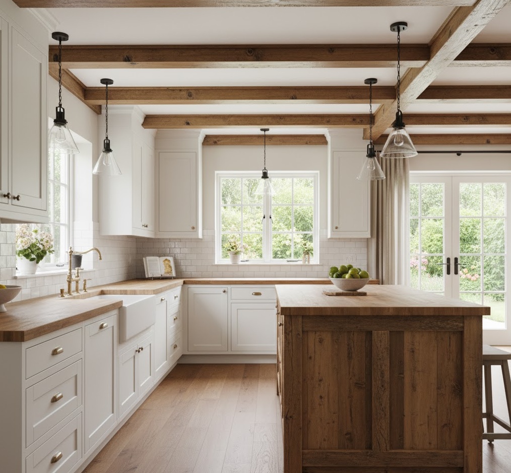 A farmhouse open concept kitchen remodel evokes rustic charm and warmth, blending traditional elements with modern convenience. Key features include shaker-style cabinetry, a large farmhouse sink, and often a substantial island for gathering. Materials like reclaimed wood, natural stone, and classic subway tiles are commonly used, creating a cosy yet sophisticated feel. The colour palette typically features whites, creams, and soft blues or greens, enhancing the inviting atmosphere. This design seamlessly connects the kitchen to dining and living areas, fostering a sense of community and comfort, perfect for a family-oriented home.