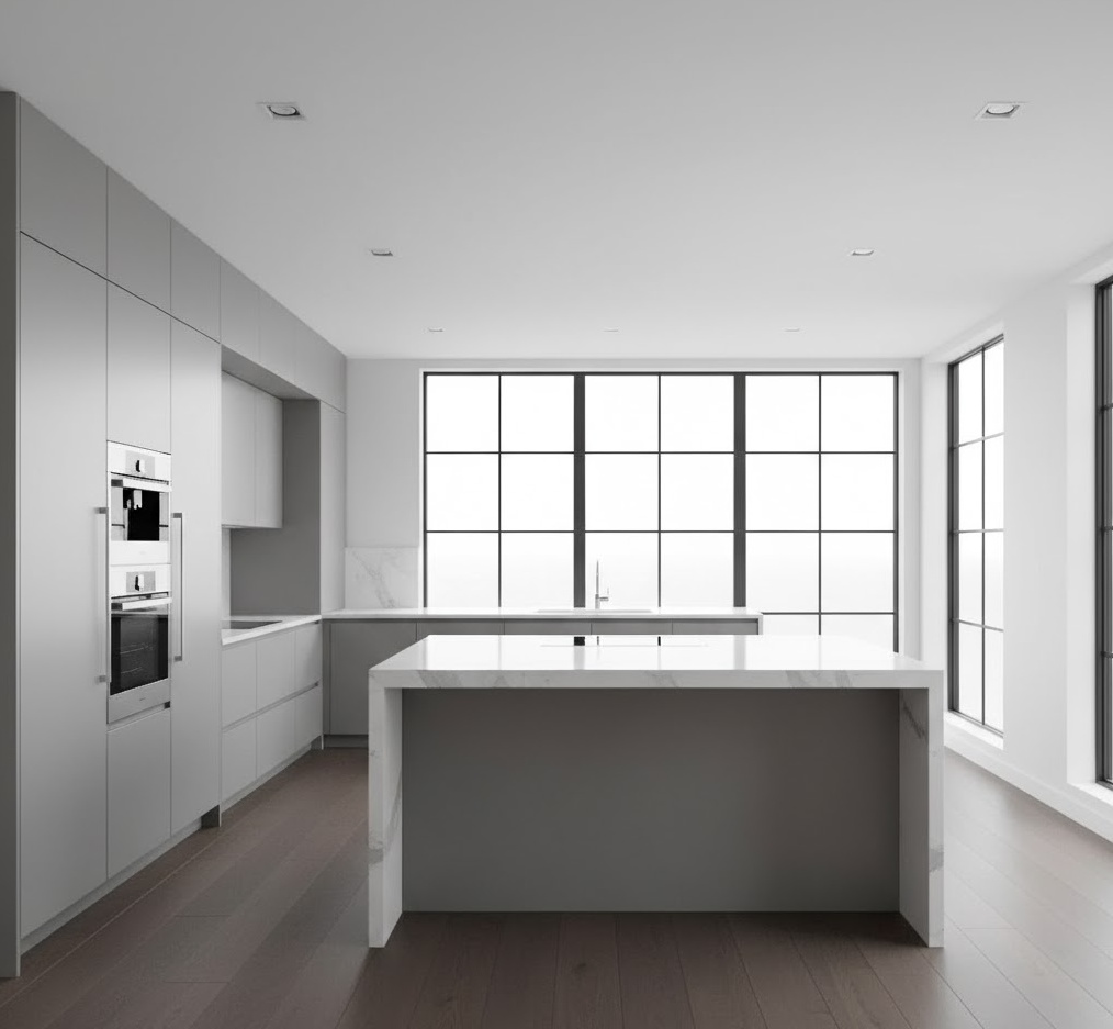 This open concept kitchen remodel embraces simplicity and functionality, creating a serene and uncluttered space. Characterised by clean lines, handleless cabinetry, and a monochromatic colour palette, it promotes a sense of calm and spaciousness. High-quality, natural materials like polished concrete, light wood, and matte finishes are often employed, ensuring durability and a sophisticated aesthetic. The design prioritises seamless integration with living areas, often featuring a discreet island that doubles as a dining or prep zone, enhancing both flow and practicality. This style is perfect for those seeking a tranquil and highly efficient culinary environment.