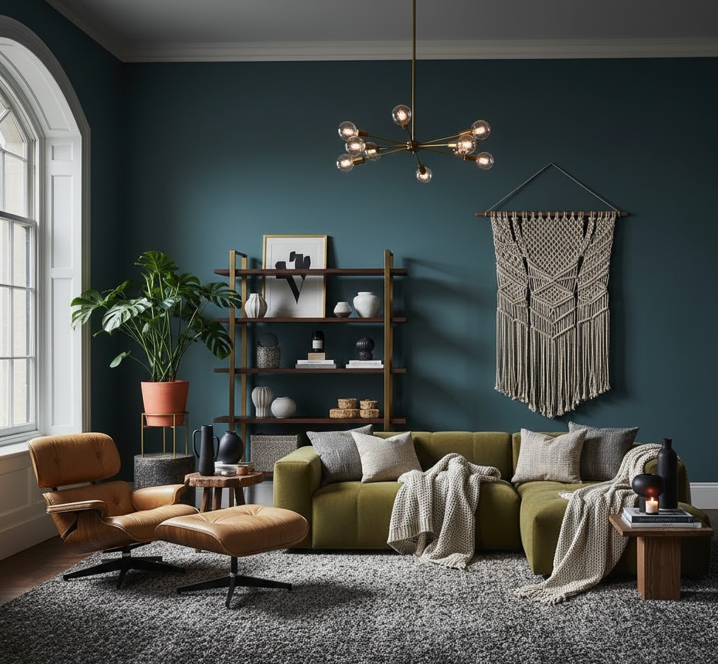 Eclectic comfort spaces celebrate individuality and curated collections, providing unique room at home design ideas for comfort and functionality. This style fearlessly mixes different periods, textures, and cultural influences to create a deeply personal and inviting atmosphere. There’s no strict colour palette; instead, it often features a base of neutrals with vibrant pops of colour from art, textiles, and accessories. Materials are diverse, ranging from vintage wood and metal to plush velvets and global textiles. The mood is vibrant, artistic, and full of character, telling a story through its varied elements. Functionality is achieved by ensuring that despite the mix, the space remains cohesive and comfortable, with ample seating and thoughtful arrangements that cater to daily needs.