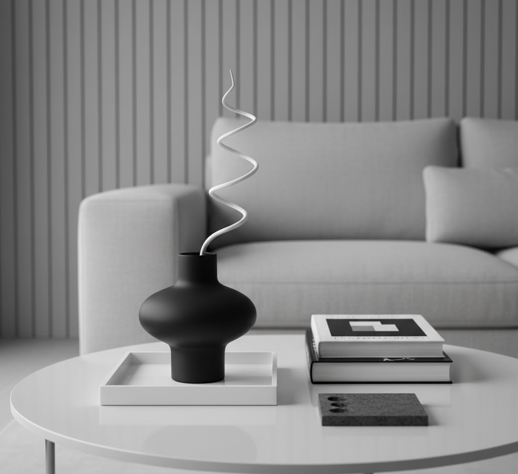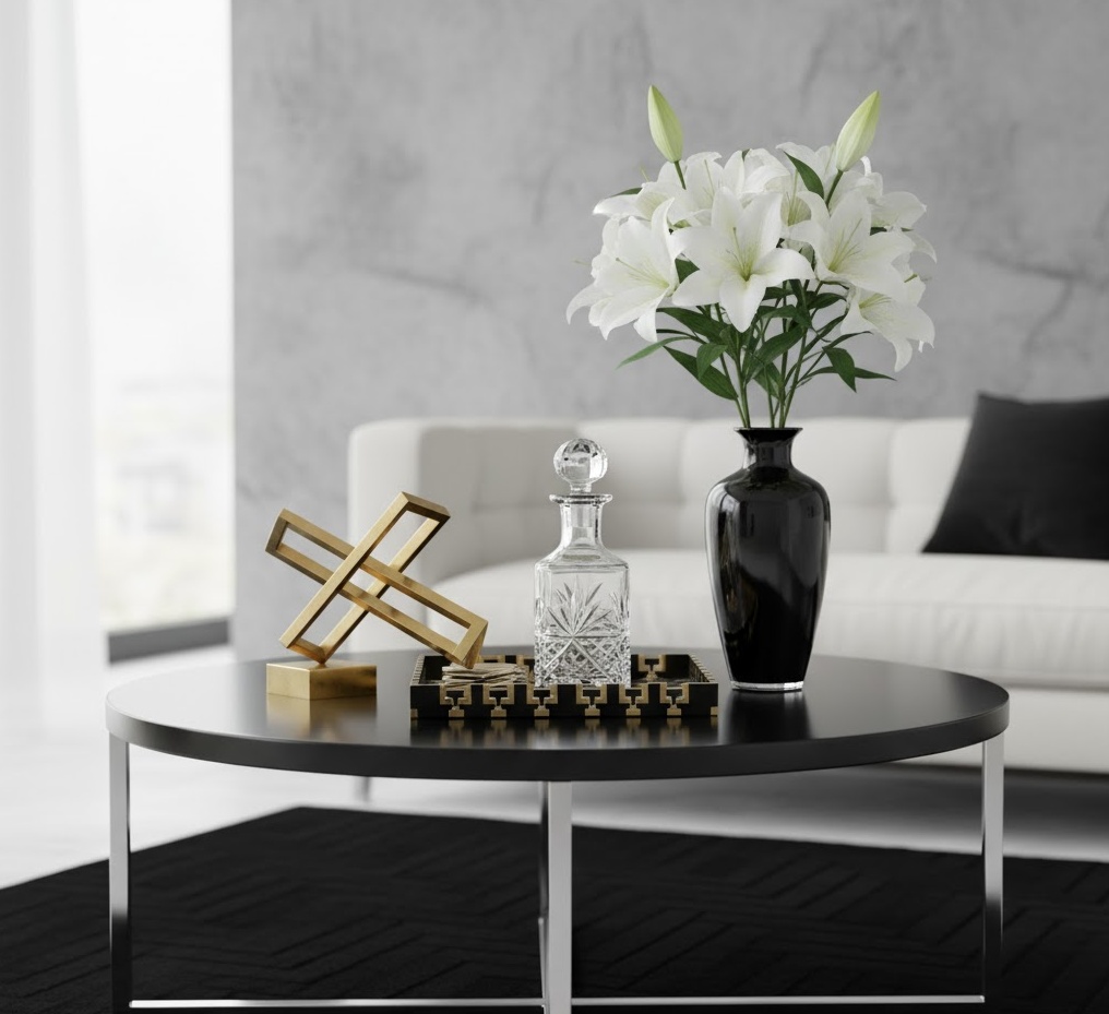 Monochrome table styling offers a sophisticated and striking aesthetic, focusing on variations of a single colour or the classic combination of black, white, and grey. This approach typically features a round coffee table in a neutral tone, such as a matte black, glossy white, or a sleek grey, providing a strong foundation for the tonal play. Accessories are chosen for their contrasting textures and subtle shifts in shade, such as a matte black ceramic vase with a single white sculptural branch, a glossy white tray holding a stack of black and white art books, or a textured grey coaster. The colour palette is intentionally limited, relying on the interplay of light, shadow, and material to create depth and visual interest, resulting in a highly refined and contemporary mood. Functionality is about creating a cohesive and elegant display, where every item contributes to the overall sophisticated simplicity. This styling transforms your round coffee table into a masterpiece of understated design.