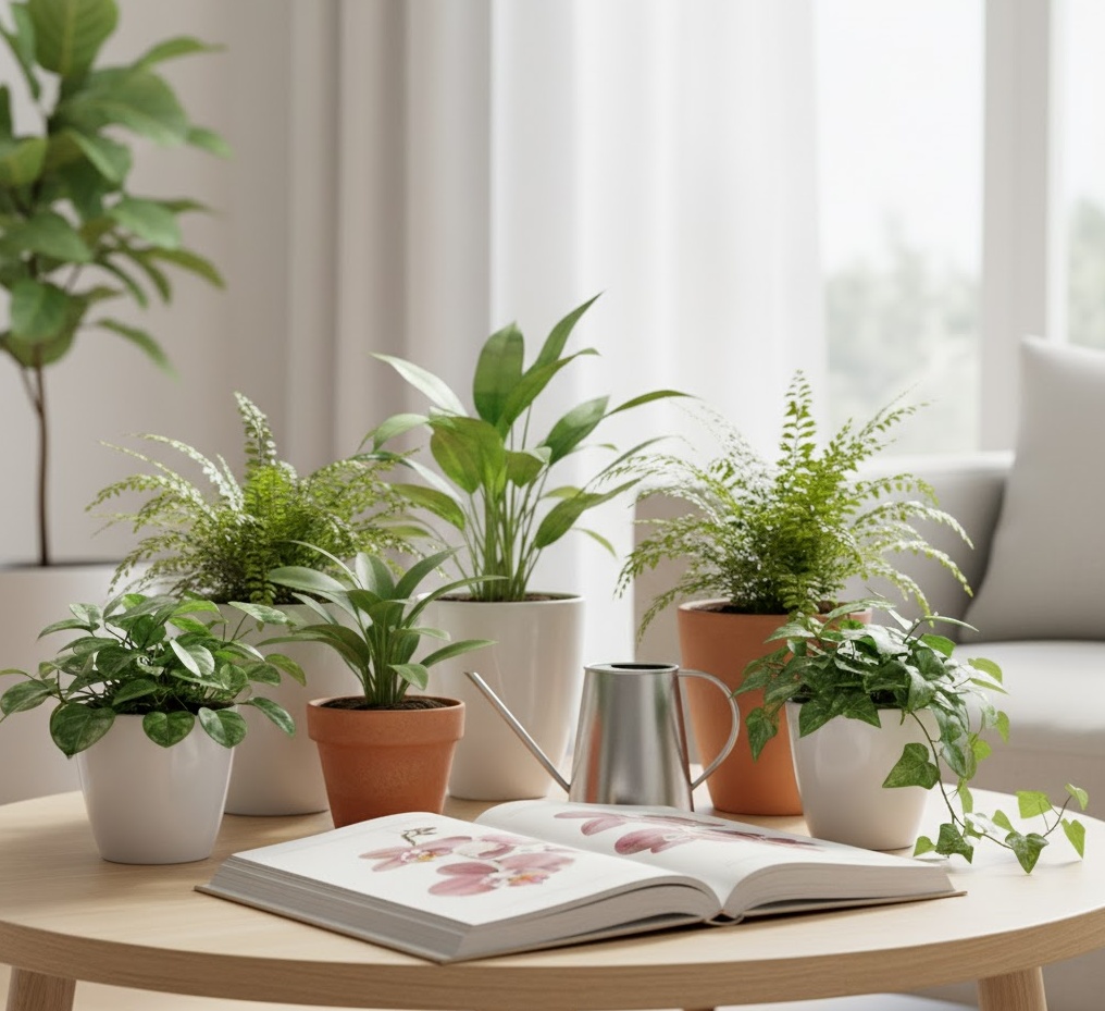 A botanical coffee table oasis styling transforms your round coffee table into a lush, vibrant display of nature, bringing the calming and refreshing energy of plants indoors. This approach often features a round coffee table made from natural wood or a simple, clean-lined material that allows the greenery to be the star. Accessories are predominantly living plants, arranged in varying heights and textures, housed in terracotta, ceramic, or woven pots, alongside perhaps a delicate watering can or a botanical-themed art book. The colour palette is dominated by various shades of green, complemented by earthy browns, terracotta oranges, and crisp whites, creating a fresh and invigorating mood. Functionality is about nurturing life and promoting well-being, with the plants purifying the air and adding a dynamic, ever-changing element to your living space. This styling transforms your round coffee table into a miniature garden, fostering a sense of peace and vitality.