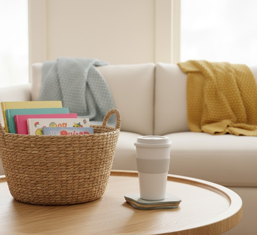 The functional family coffee table styling prioritises durability, practicality, and ease of use, creating a welcoming and resilient hub for everyday living. This approach often features a sturdy round coffee table made from robust wood or a durable laminate, designed to withstand the rigours of family life. Accessories are chosen for their child-friendly nature and organisational capabilities, such as woven baskets for toys or remote controls, soft-edged coasters, and perhaps a stack of engaging picture books. The colour palette is typically warm and inviting, incorporating practical, forgiving shades that hide minor spills, often complemented by cheerful accents. Functionality is at its core, ensuring the table serves multiple purposes, from homework station to board game arena, without compromising on style or safety. This styling transforms your round coffee table into a versatile and indispensable centrepiece for family activities.