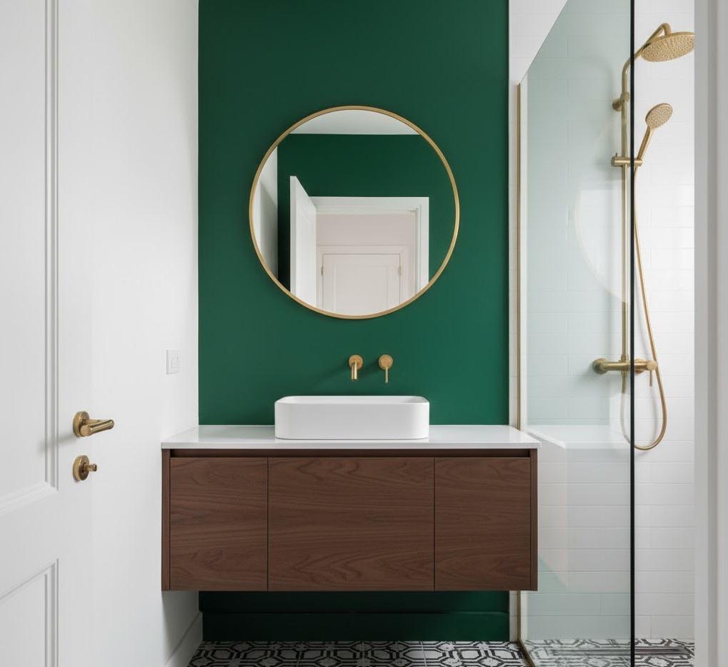 Don’t shy away from bold small bathroom palettes; when used strategically, vibrant colours can create a powerful design statement in a compact area. Instead of painting all walls, consider an accent wall in a deep emerald green, navy blue, or rich plum, paired with lighter neutrals on the remaining surfaces to prevent the space from feeling overwhelmed. High-gloss tiles or a striking patterned wallpaper can also introduce a dramatic flair, reflecting light and adding depth. Materials like polished chrome or brass fixtures complement these strong hues, adding a touch of luxury. This approach transforms a small bathroom into a jewel box, showcasing personality and making a memorable impact, proving that compact doesn’t mean conservative.