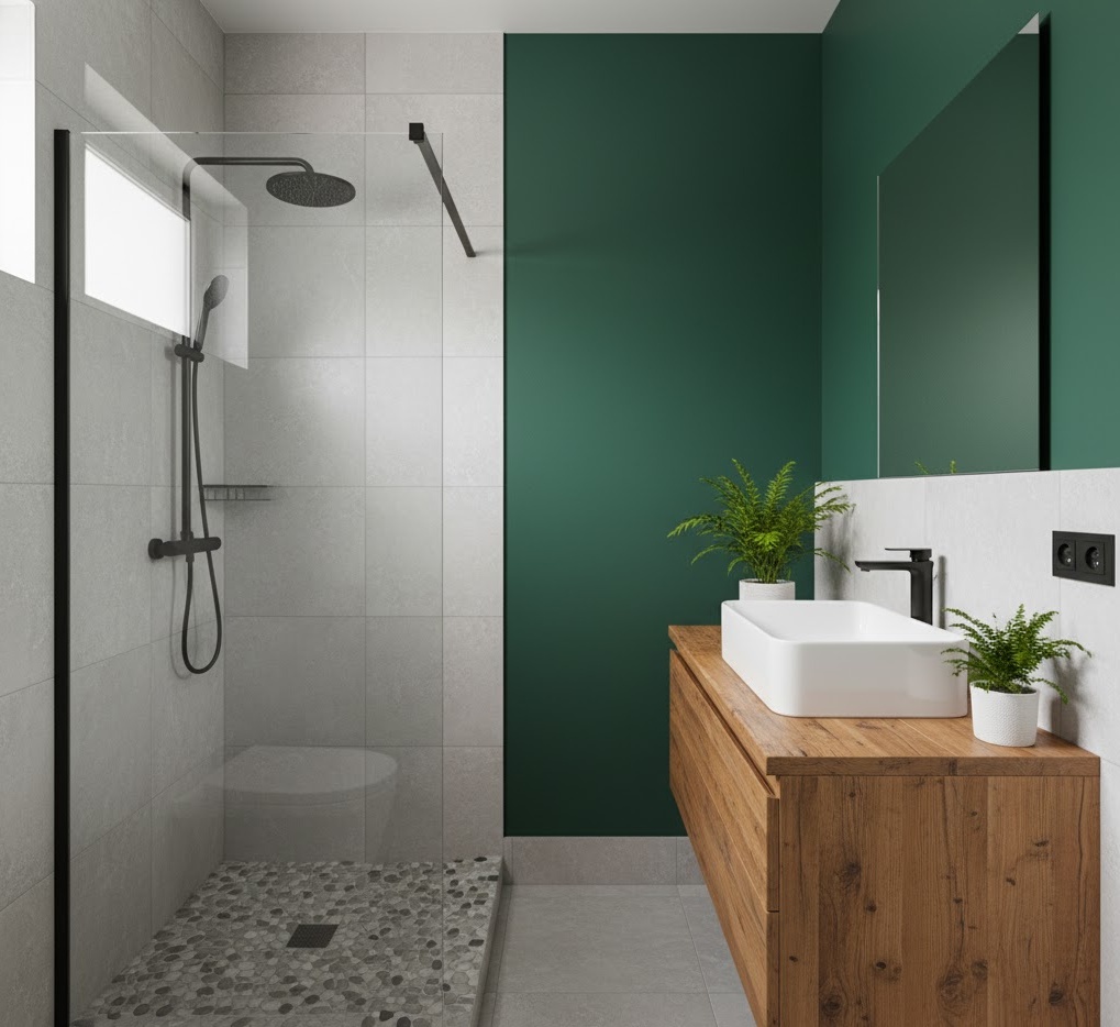 Bring the outdoors in with nature inspired small bathroom colours, creating a refreshing and harmonious atmosphere in your compact space. A palette of forest greens, sky blues, earthy browns, and stone greys connects the room to natural landscapes, fostering a sense of calm and vitality. Incorporate organic materials such as pebble tiles, reclaimed wood, bamboo, and lush plant accents to enhance this biophilic design. The mood is one of serene connection and natural tranquility, making the bathroom feel like a peaceful sanctuary. These small bathroom colour ideas are excellent for promoting well-being and adding a touch of the natural world, even in the most urban settings, without overwhelming the space.