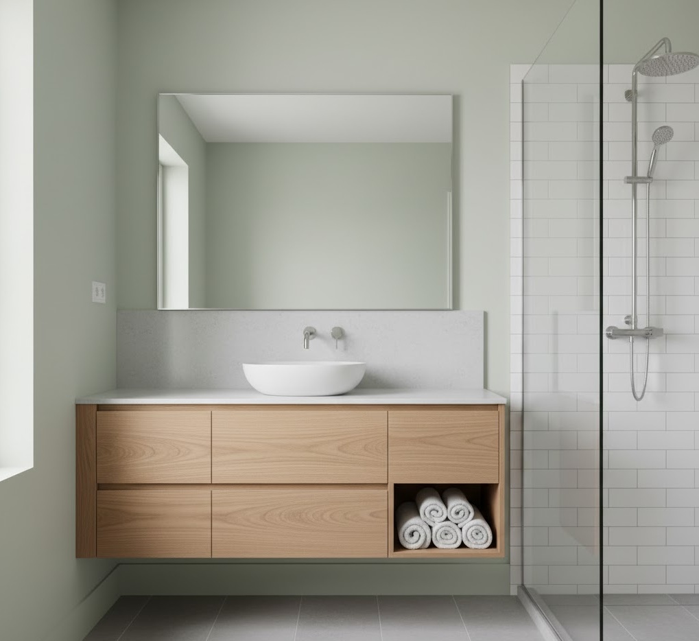 Monochromatic small bathroom tones offer a sophisticated and cohesive look, making a compact space feel larger and more unified. By utilising varying shades, tints, and tones of a single colour, such as grey, beige, or even a soft blue, you create depth and interest without introducing visual breaks. This approach tricks the eye into perceiving a more expansive area, as there are no jarring contrasts. Materials with different textures, like matte and gloss tiles in the same hue, or a painted wall paired with a textured wallpaper, add dimension. The mood is one of understated elegance and seamless flow, ensuring your small bathroom colour ideas contribute to a chic, organised, and surprisingly spacious feel.