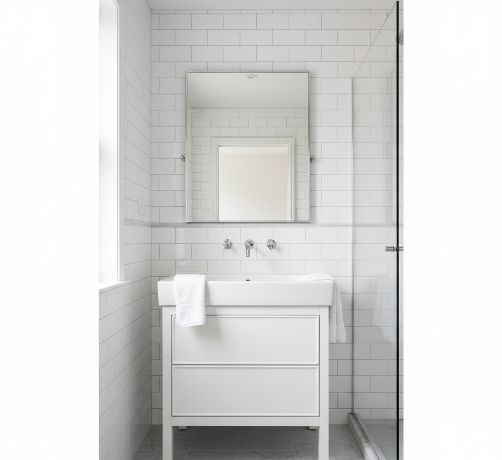 Opt for enduring elegance with timeless small bathroom tones, ensuring your compact space remains stylish for years to come. Classic colours such as crisp white, soft cream, light grey, and muted beige form the foundation, offering a sophisticated and versatile backdrop. These hues are inherently light-reflecting, making small bathrooms feel more expansive and airy. Materials like Carrara marble, subway tiles, polished chrome, and traditional wood cabinetry contribute to a refined aesthetic that transcends trends. The mood is one of understated luxury and enduring appeal, creating a bathroom that feels both classic and fresh. These small bathroom colour ideas are a wise investment, offering beauty and functionality without compromise.