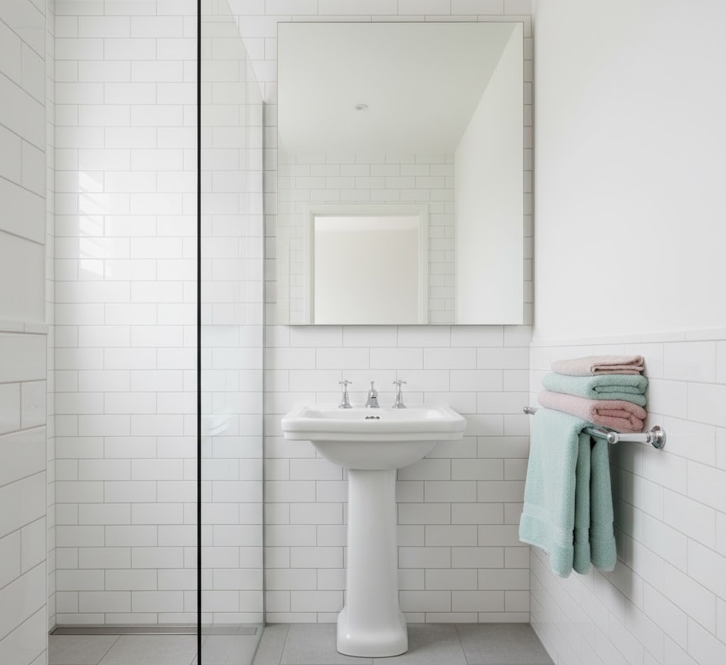 Classic White Small Bathroom – A stunning example of small bathroom ideas on a budget design