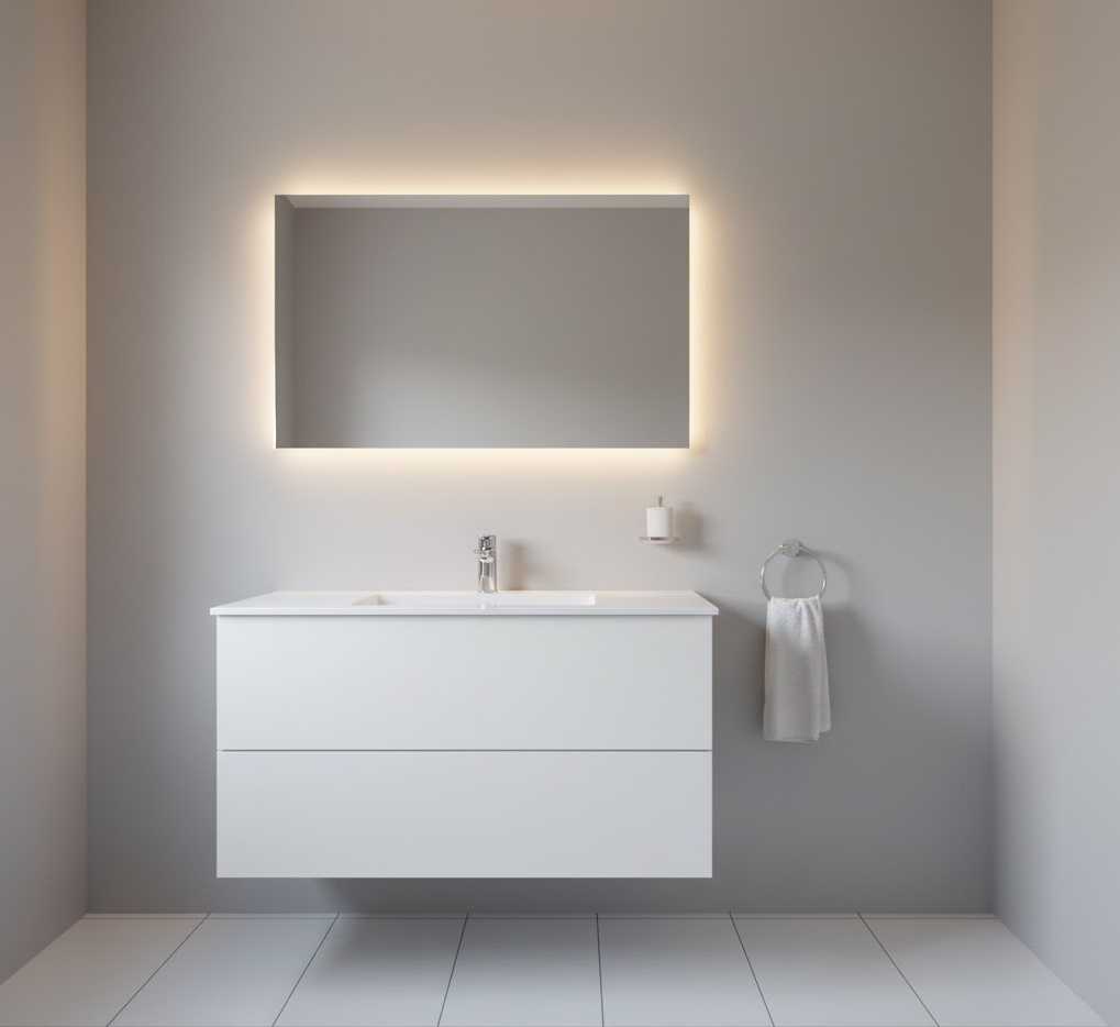 Discover sleek and functional design with contemporary small bathroom deals, focusing on current trends and innovative materials for a modern aesthetic. This style embraces neutral colours, clean lines, and minimalist forms, creating a fresh and uncluttered environment. The mood is modern, fresh, and effortlessly sophisticated, perfect for a streamlined daily routine. Functionality is paramount, with smart storage solutions, integrated features, and compact fixtures that maximise space. Affordable large-format tiles, sleek laminate vanities, and chrome fixtures are key to achieving this up-to-date look without a premium price tag, making modern design accessible for all.
