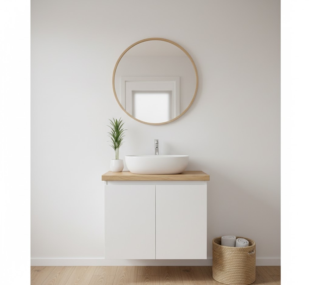 Experience the harmonious blend of Japanese minimalism and Scandinavian warmth with Japandi budget bathroom style, creating a serene and balanced retreat. This aesthetic is characterised by clean lines, natural materials, and a muted colour palette of whites, greys, and light wood tones. The focus is on tranquility and functionality, promoting a calm and uncluttered environment. The mood is serene and balanced, fostering a sense of peace and mindfulness. Affordable materials like light wood-effect flooring, concrete-effect panels, and simple white fixtures are key to achieving this sophisticated fusion, proving that elegant design doesn’t have to come with a hefty price tag.