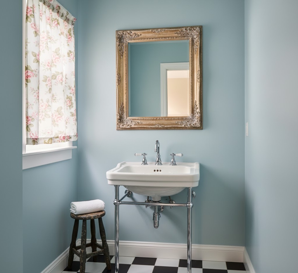Step back in time with a charming vintage inspired budget bath, infusing your small space with nostalgic character and antique touches. This style often features pastel colours, subtle floral patterns, and classic fixtures that evoke a bygone era. Repurposed furniture, such as an old dresser transformed into a vanity, adds unique charm and keeps costs down. The mood is whimsical, charming, and full of personality, creating a truly unique washroom. Affordable materials like patterned wallpaper, painted wood panels, and a thrifted decorative mirror are perfect for achieving this delightful, retro aesthetic without overspending.