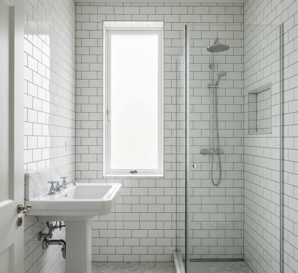 Achieve timeless elegance with a classic white shower design, a perennially popular choice that maximises light and creates an illusion of space in any small bathroom. This style relies on a pristine white colour palette, often paired with subtle grey veining in marble or classic black accents for contrast. Materials are chosen for their enduring beauty and cleanliness, such as white subway tiles, Carrara marble, and polished chrome or nickel fixtures. Functionality is paramount, with well-placed niches for toiletries and a clear glass shower enclosure to maintain an open, airy feel. The mood is one of crisp sophistication and enduring charm, transforming a small bathroom into a bright, clean, and utterly classic sanctuary that never goes out of style.