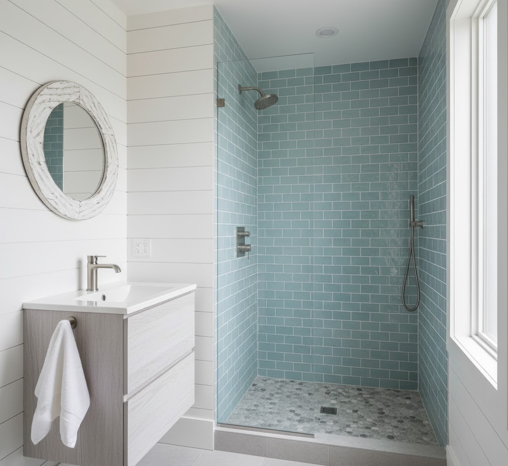 3. Modern Coastal Shower Space