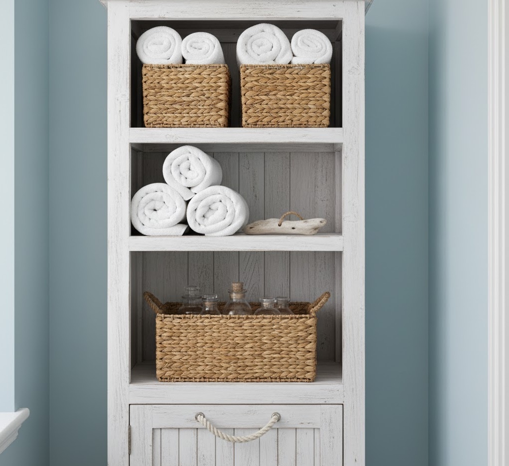 16. Coastal Small Bathroom Storage