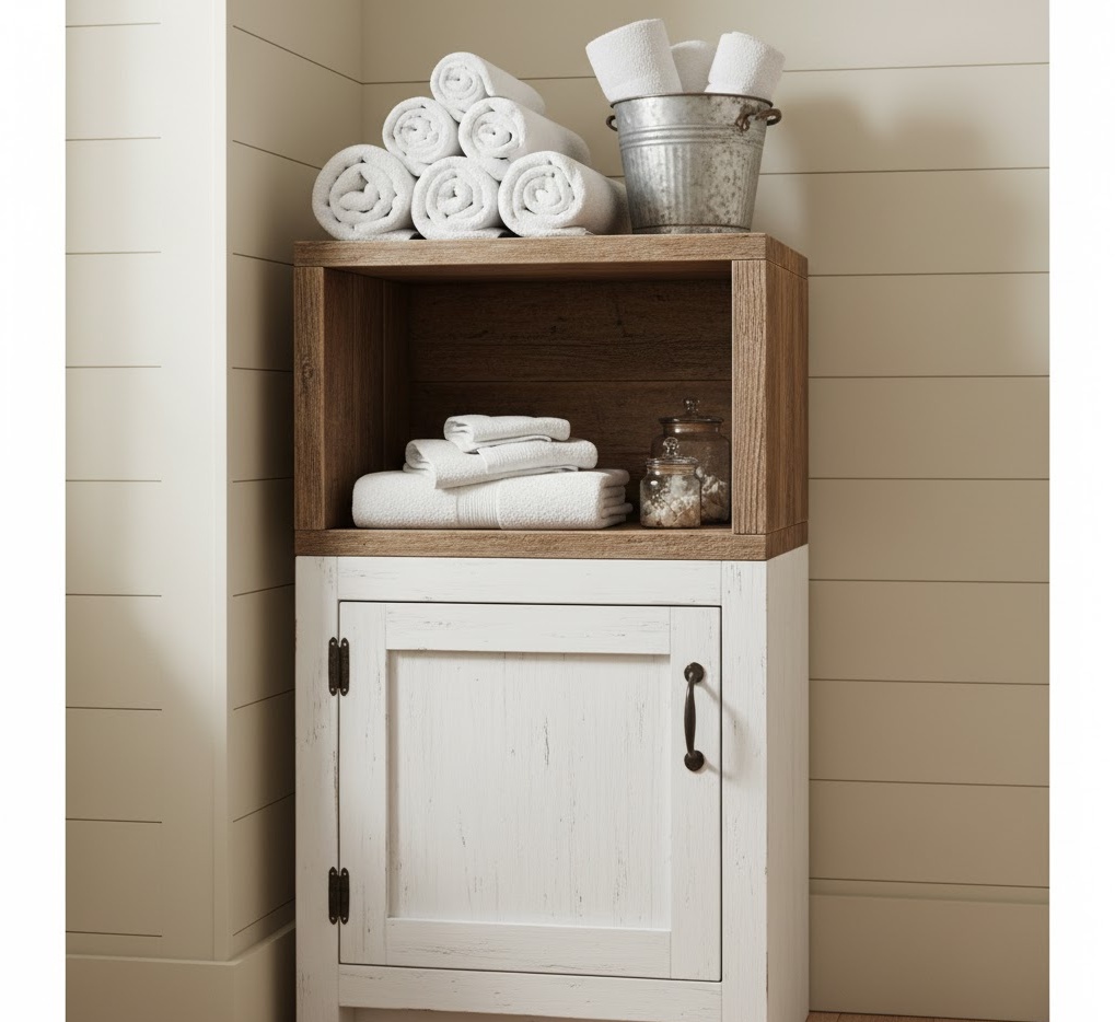 17. Farmhouse Small Bathroom Storage