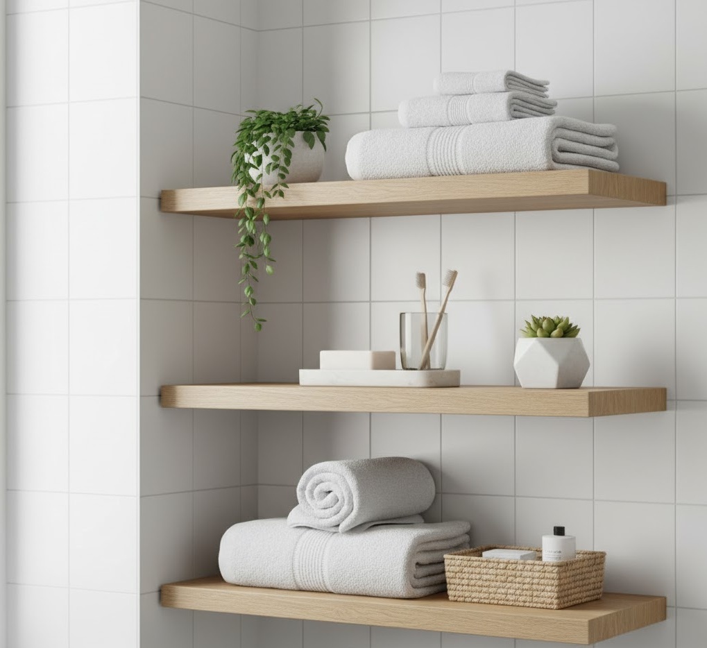 1. Floating Shelves Small Bathroom Storage