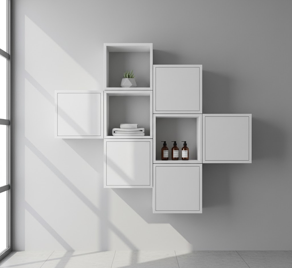 Modular small bathroom storage ideas offer unparalleled flexibility and customisation, allowing you to adapt your storage to evolving needs and unique spaces. These systems consist of individual components like shelves, drawers, and cabinets that can be combined and reconfigured in various ways. Materials often include sleek laminates, painted MDF, or metal, in a range of contemporary colours like white, grey, or even bold accents. The mood is modern and efficient, providing a highly organised and adaptable solution for compact bathrooms. This approach ensures every item has a designated spot, making it easy to maintain order and maximise every inch of your small bathroom.