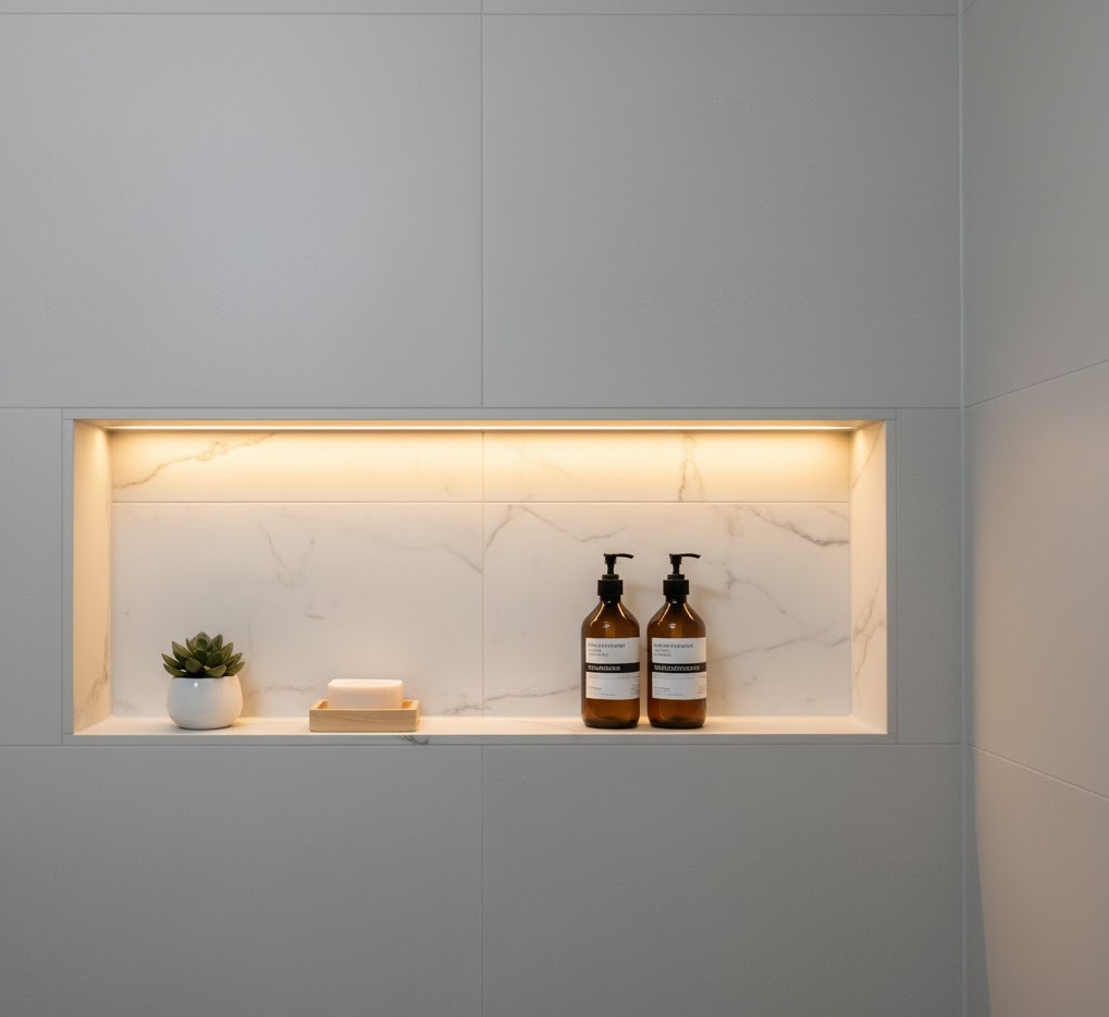 3. Niche Recess Small Bathroom Storage