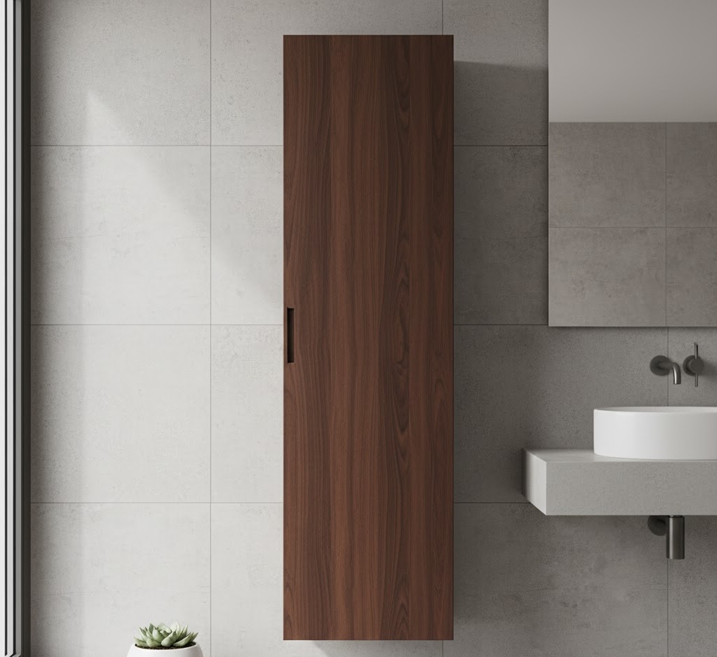 Utilising vertical wall space is a brilliant small bathroom storage idea, especially when floor area is limited. Tall, slim wall-mounted cabinets or shelving units draw the eye upwards, creating an illusion of height and maximising storage capacity without encroaching on valuable floor space. These units often come in sleek, contemporary finishes like matte grey, crisp white, or dark wood, complementing a modern aesthetic. They are perfect for stashing away linens, cleaning supplies, or extra toiletries, keeping your small bathroom tidy and organised. By extending storage upwards, you can significantly increase functionality while maintaining a streamlined and uncluttered environment.