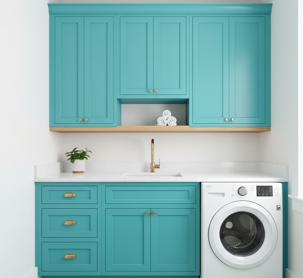 Inject personality into your compact laundry with a colourful design, proving that small spaces can handle bold statements. This approach uses vibrant hues for cabinetry, accent walls, or patterned floor tiles to create an energetic and cheerful atmosphere. Contrasting colours or playful patterns can be used to define zones or add visual interest, making the space feel less utilitarian. While bold, functionality remains key, with smart storage solutions ensuring organisation. It’s about transforming a mundane chore area into a joyful and inspiring corner of your home, reflecting your unique style.