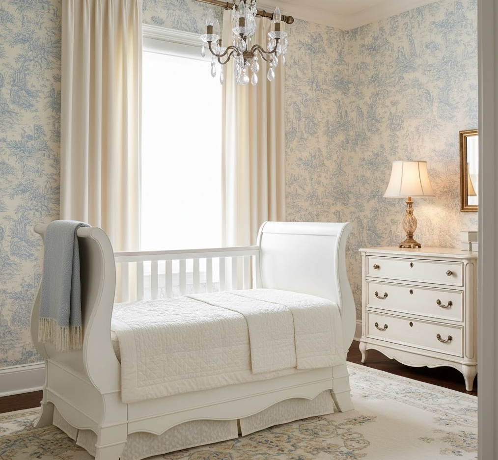 A classic tiny nursery offers timeless elegance and enduring charm, proving that traditional style can flourish in a compact space. This design often features traditional wooden furniture, such as a sleigh cot or a chest of drawers, paired with soft, muted colours like creams, pale blues, or gentle greens. Delicate patterns like toile, stripes, or subtle florals are often incorporated through bedding or curtains. Materials like fine wood, soft cotton, and perhaps a touch of velvet add to the refined feel. Functionality is achieved through well-crafted, durable pieces and discreet storage. The mood is sophisticated and comforting, creating a beautiful and enduring small nursery.