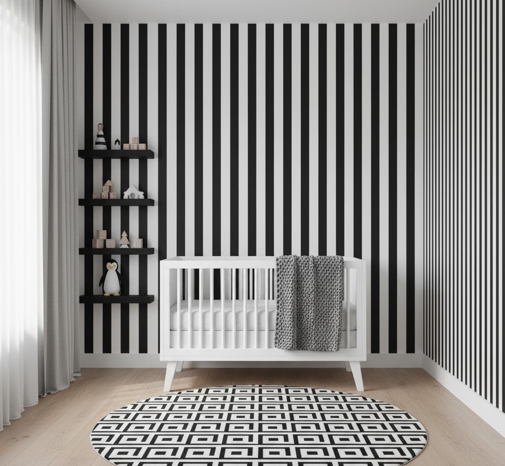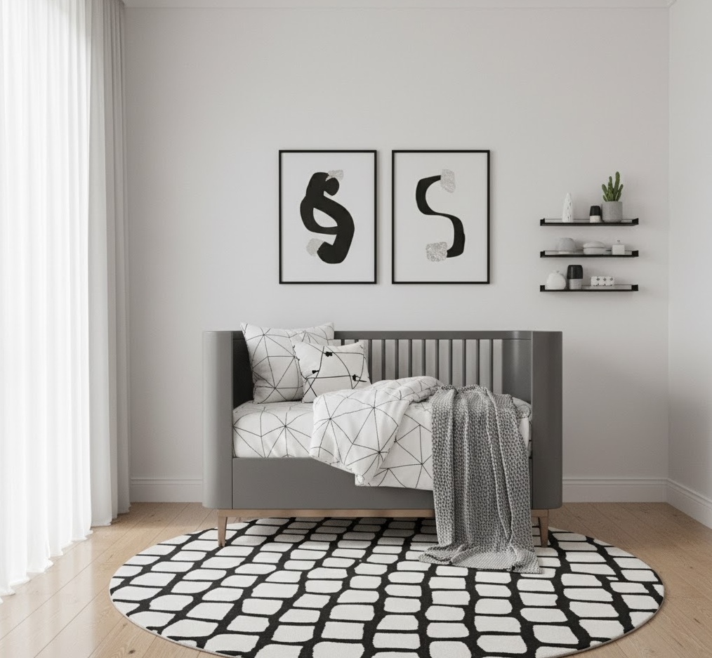 A monochrome nursery space is a sophisticated and stimulating choice for a small room, offering high contrast and visual interest. This style predominantly uses black, white, and various shades of grey, creating a chic and modern aesthetic. Geometric patterns, stripes, and polka dots are often incorporated to add depth and playfulness without introducing colour. Materials can vary from sleek painted wood to soft cotton and textured knits, providing tactile engagement. Functionality is paramount, with streamlined furniture and clever storage solutions blending seamlessly into the cohesive scheme. The mood is stylish and calming, proving that a small nursery can be both bold and serene.
