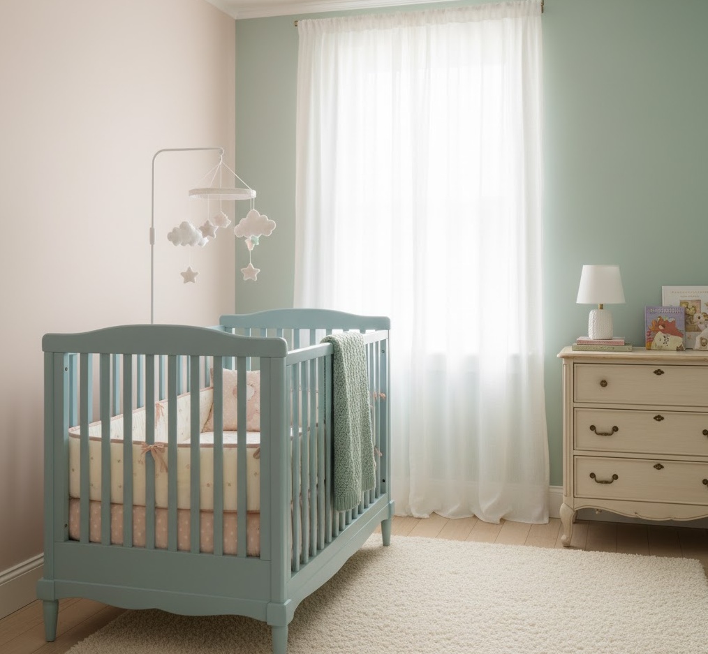 A pastel compact nursery creates a soft, dreamy, and incredibly soothing environment, ideal for a tiny space. This style relies on a gentle colour palette of light blues, pinks, mint greens, lavenders, and creams, which naturally make a room feel larger and airier. Materials are often soft and inviting, such as plush rugs, organic cotton bedding, and painted wooden furniture. Functionality is achieved through simple, elegant pieces and discreet storage solutions that maintain the serene aesthetic. The mood is tranquil and comforting, providing a peaceful haven for baby, making this small nursery a truly calming retreat.