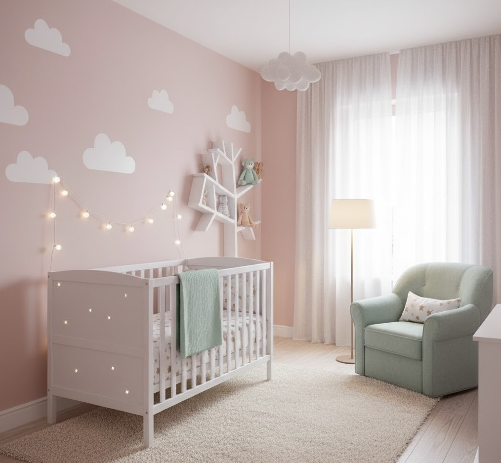 A whimsical compact nursery embraces playful charm and imaginative details, proving that even a tiny space can be magical. This style often features a soft, dreamy colour palette of pastels, often with a touch of gold or silver, and incorporates enchanting motifs like stars, clouds, or woodland creatures. Materials can range from painted wood furniture to soft, plush textiles and delicate wall decals. Functionality is integrated with creative storage, such as decorative boxes or themed shelving, keeping essentials organised without sacrificing charm. The mood is joyful and inspiring, creating a delightful small nursery that sparks wonder and imagination.