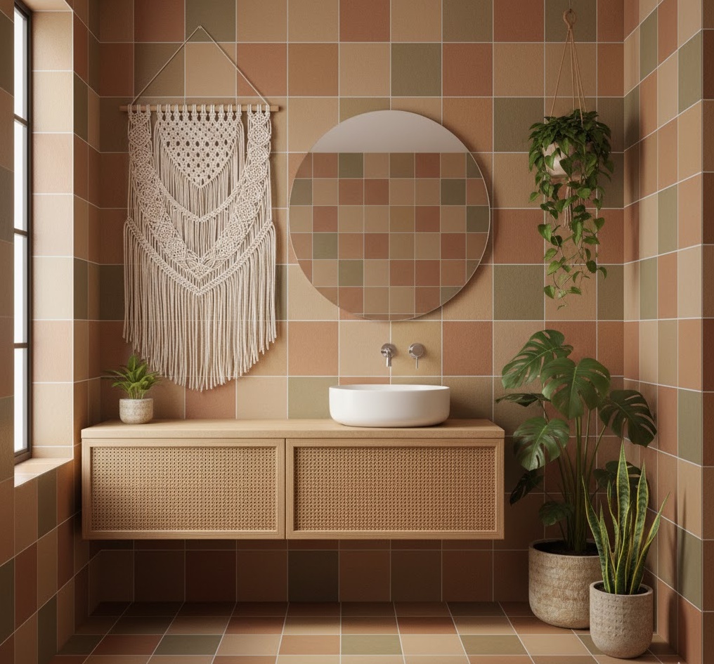 4. Earthy Tones 70s Bathroom